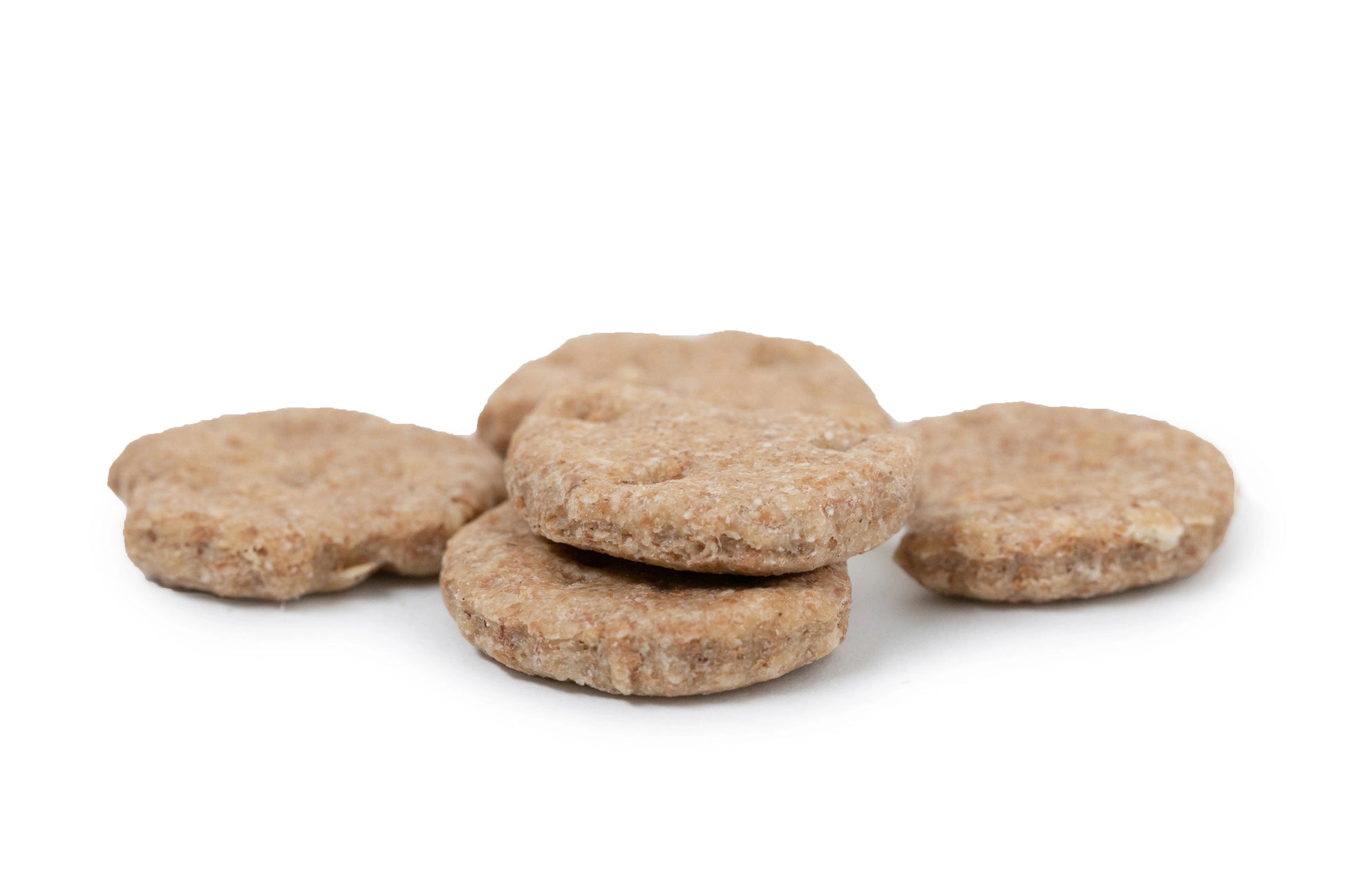 Dogs love our crunchy peanut butter biscuits, and they’re made with only the best all-natural ingredients: certified organic whole wheat flour, organic white flour, fresh ground organic peanut butter, farm fresh eggs, fresh organic oats, and organic cornmeal from red mule farms in Athens, GA. Let your pup enjoy the taste of peanut butter in a healthy way.