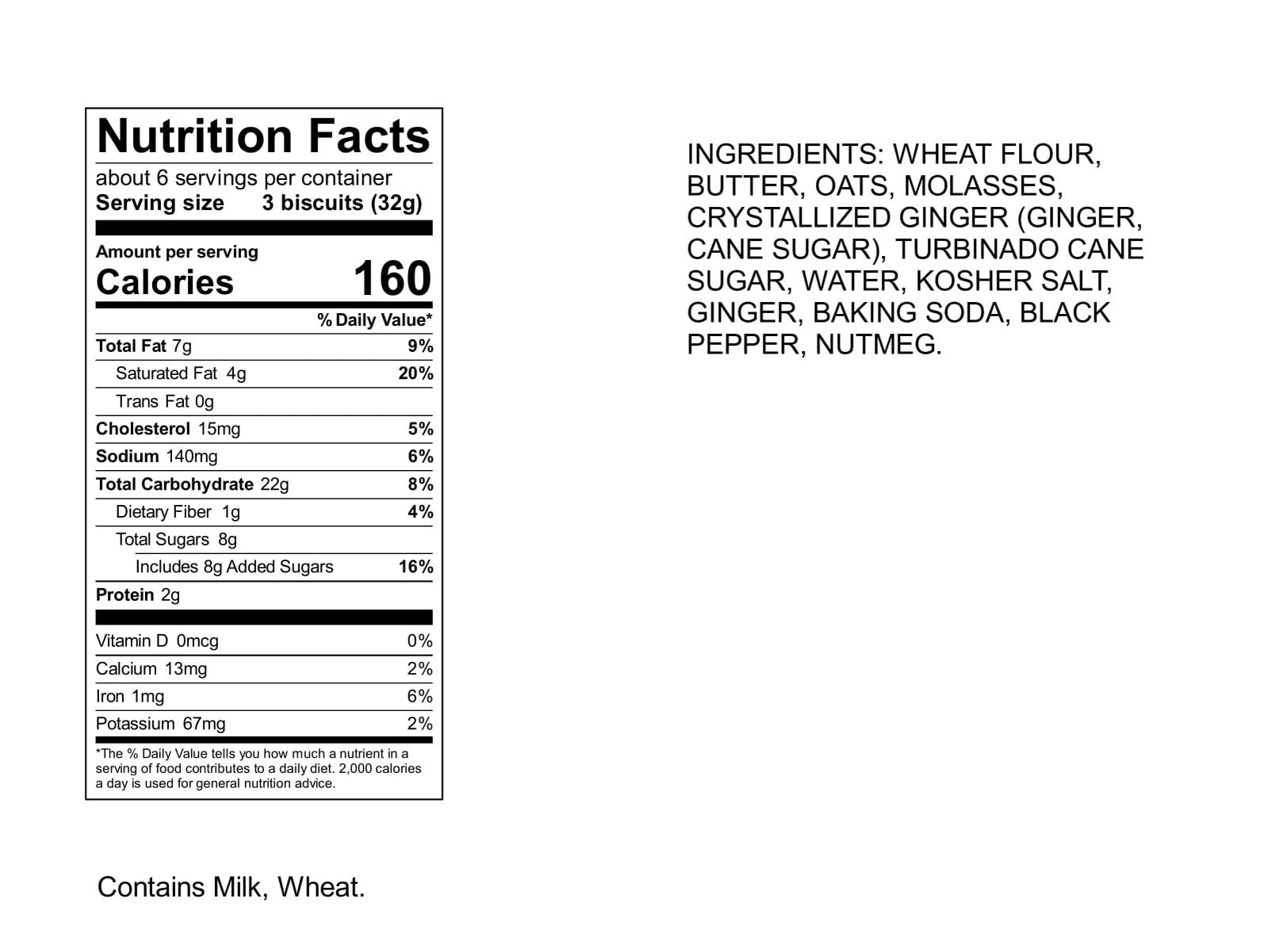 Lightly sweet biscuit with a bold ginger zing. A perfect pair with lemon or orange curd, tea or lemonade, and buttery brie or mascarpone.
