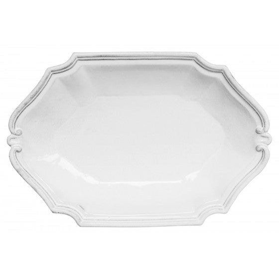 One of the House’s first creations, inspired by an ancient French dish. An attractive arabesque is moulded, stretched, cut-out and multiplied, creating curves and counter-curves. The complete service is made up of 28 classic and innovative models. Pieces with a wide range of uses, from small oval dishes for aperitif radishes to “shark” platters for giant fish dishes.