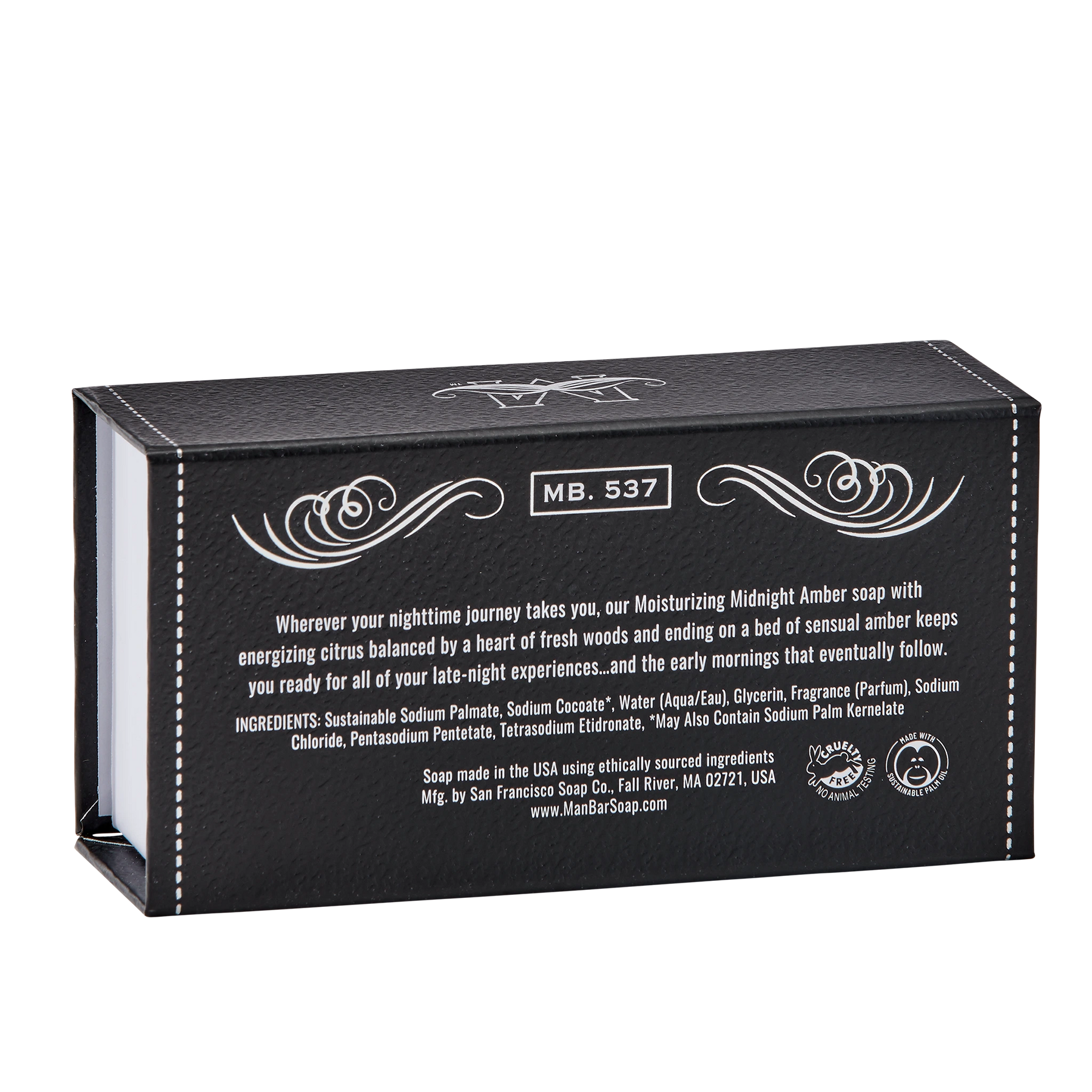 Wherever your nighttime journey takes you, our Moisturizing Midnight Amber soap with energizing citrus balanced by a heart of fresh woods and ending on a bed of sensual amber keeps you ready for all of your late-night experiences…and the early mornings that eventually follow.