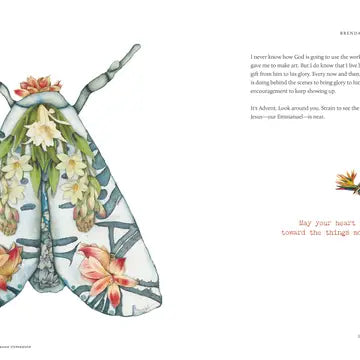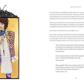 This book is a 40-day journey together through the Advent season with art, scriptures, and the written word. “Advent” simply means the arrival of a notable person, thing, or event. Christmas is the advent of Jesus Christ into the world. Your world. And mine. I encourage you to set aside time for the 40 days leading up to Christmas Day to prepare your heart and mind for this special season. May this book inspire and encourage you anytime of the year and become an experience you can enjoy over and over again.