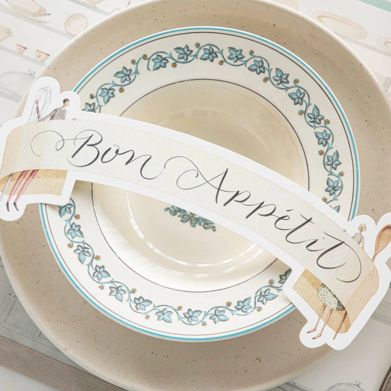 Bon Appétit! The meal has been prepped and is ready to serve. Enjoy the tiny characters with their oversized cooking utensils in this whimsical banner painted by artist, Laura Stoddart. A perfect complement to welcome your guests to the table, fill out the banner with guests’ names or a celebratory message. Pair with other items from our Table for Two Story to complete the look on your table.